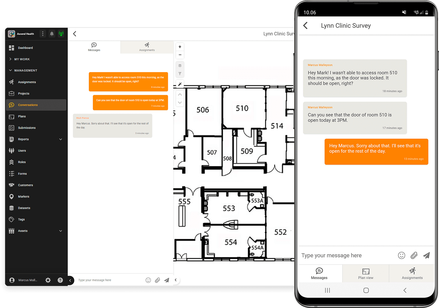Punchzee allows you to pinpoint survey findings on the plan image of the facility to show your client the location and severity of different findings quickly.
